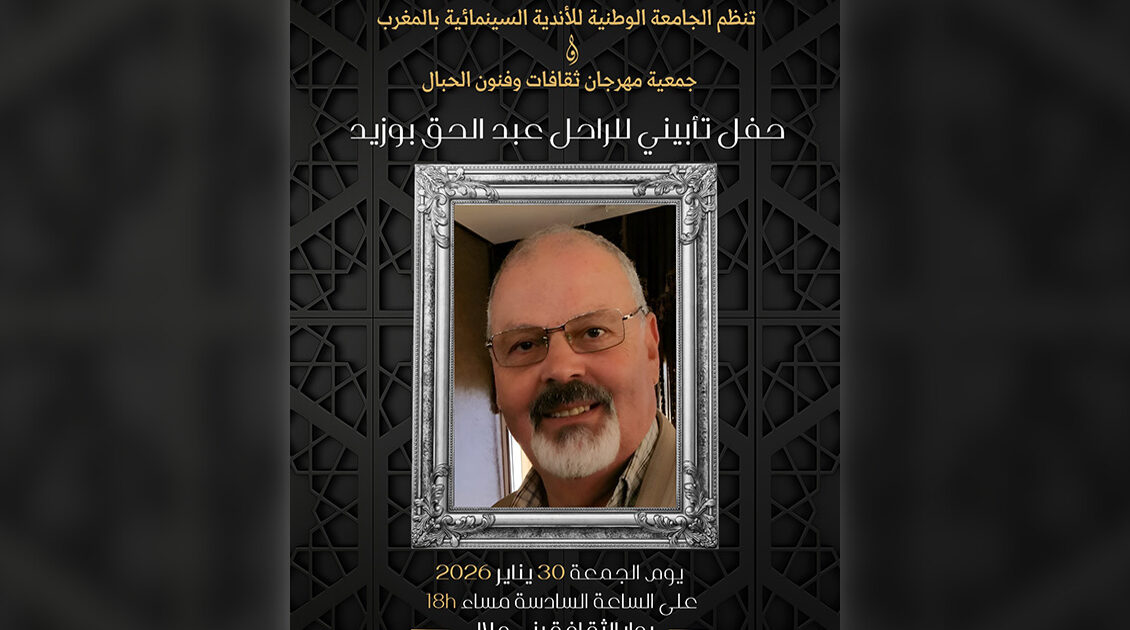 تنظم الجامعة الوطنية للأندية السينمائية بالمغرب، بشراكة مع جمعية مهرجان ثقافات وفنون الجبال، حفلاً تأبينياً وفاءً لروح الراحل عبد الحق بوزيد، أحد الأسماء البارزة في المشهد السينمائ